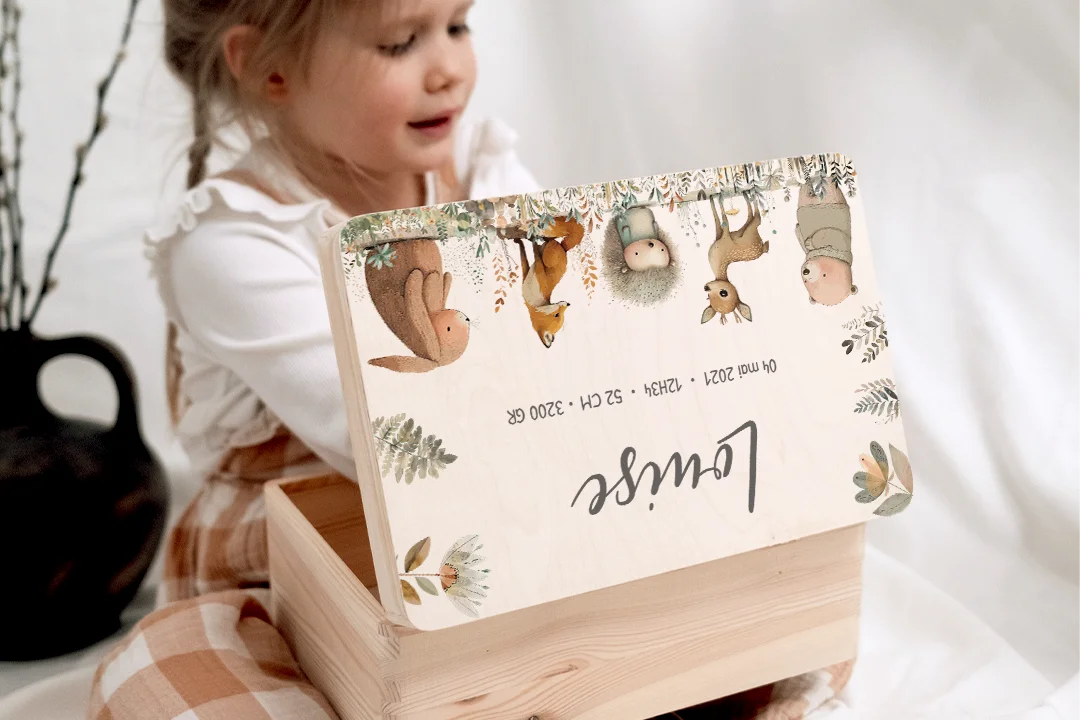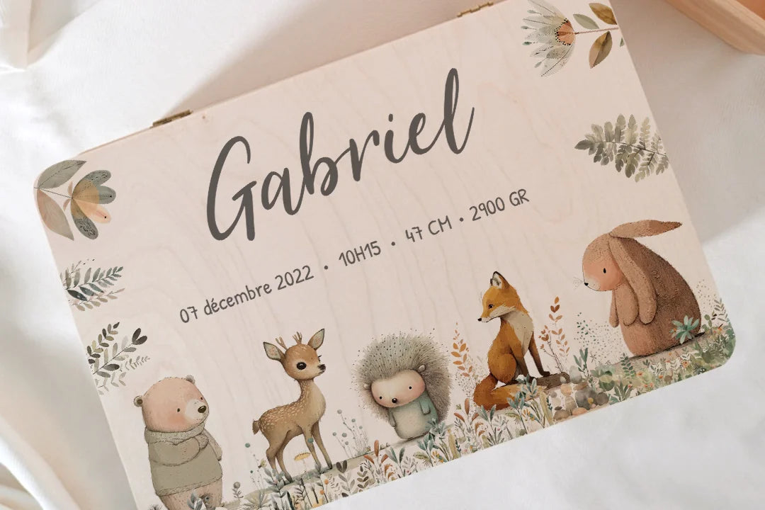Boite à souvenirs personnalisée « Animaux de la forêt en aquarelle »