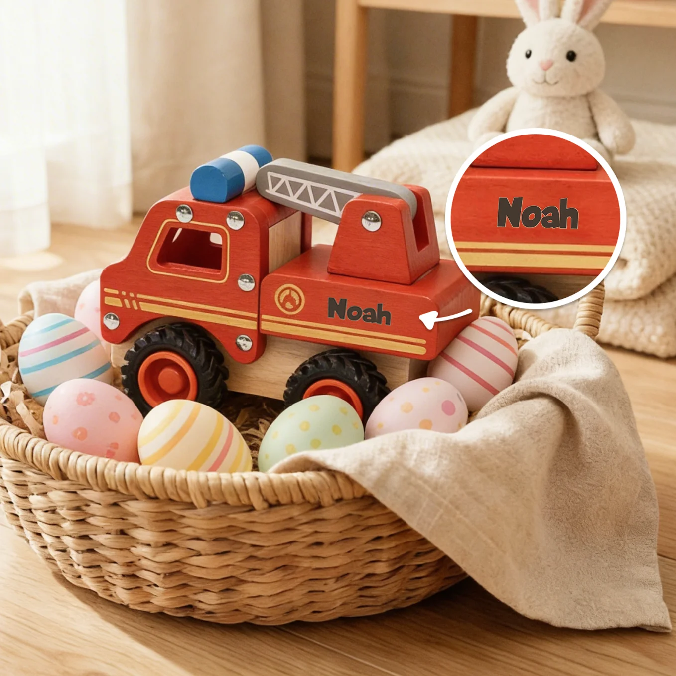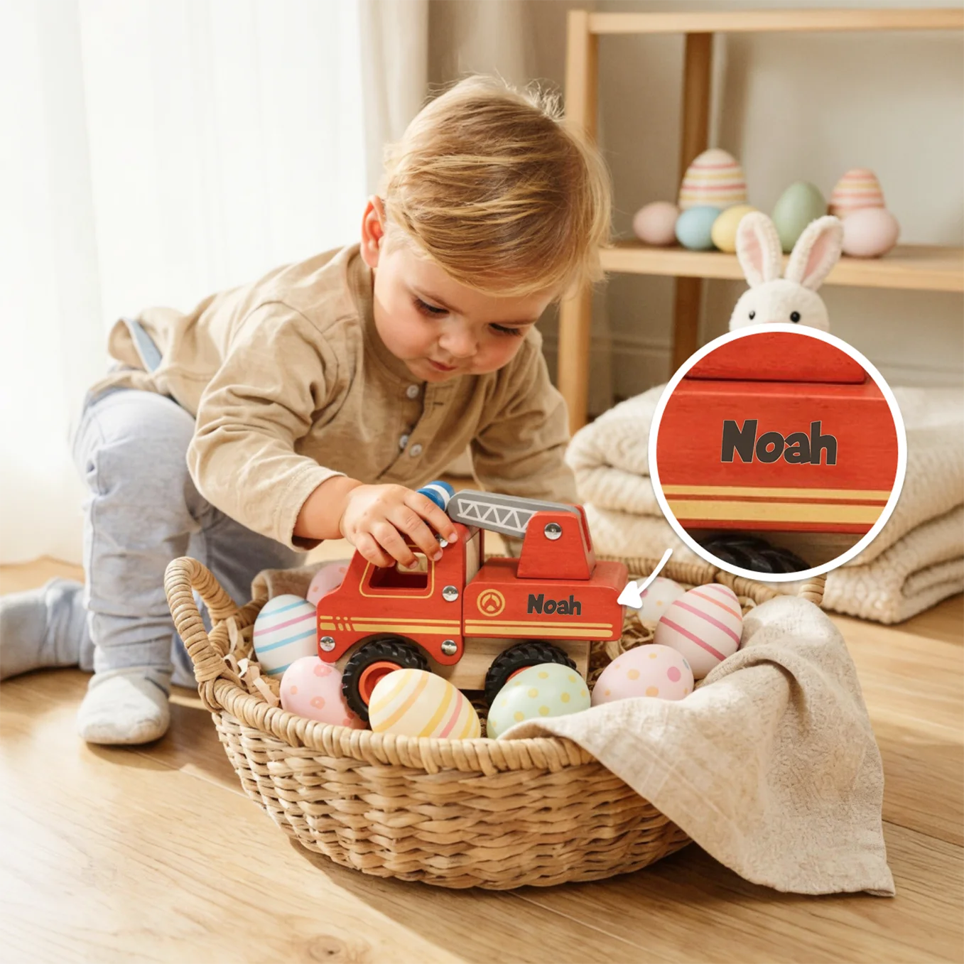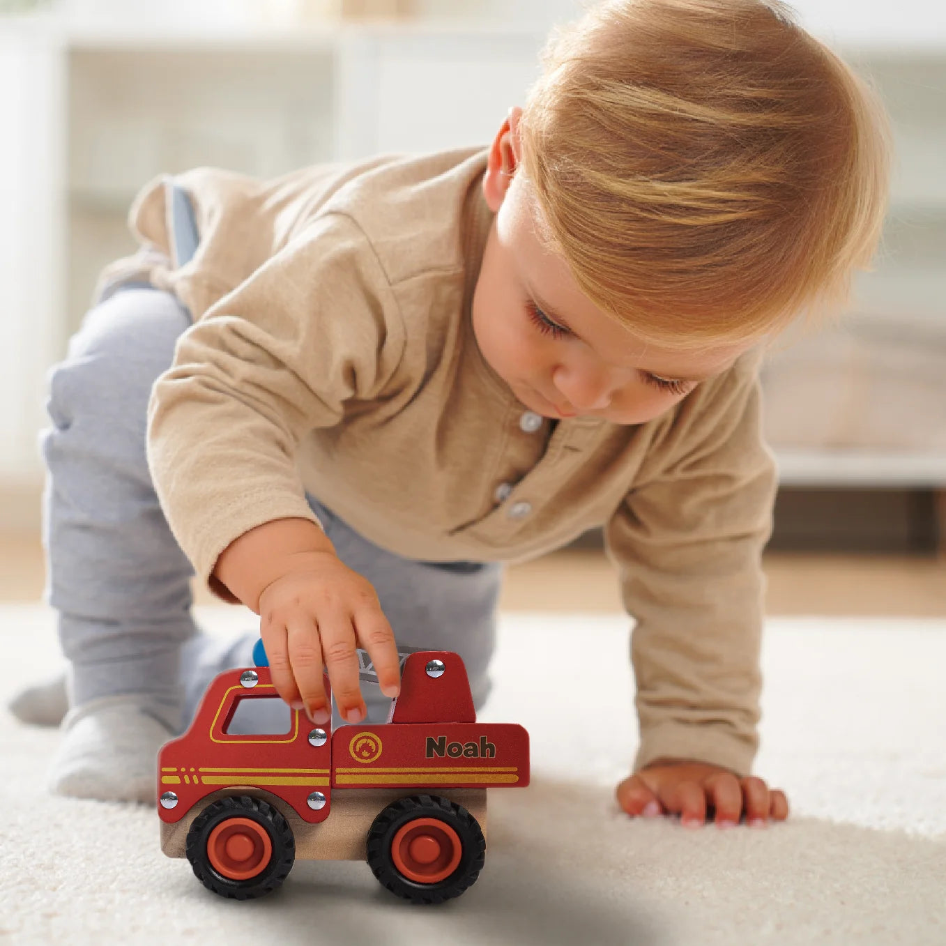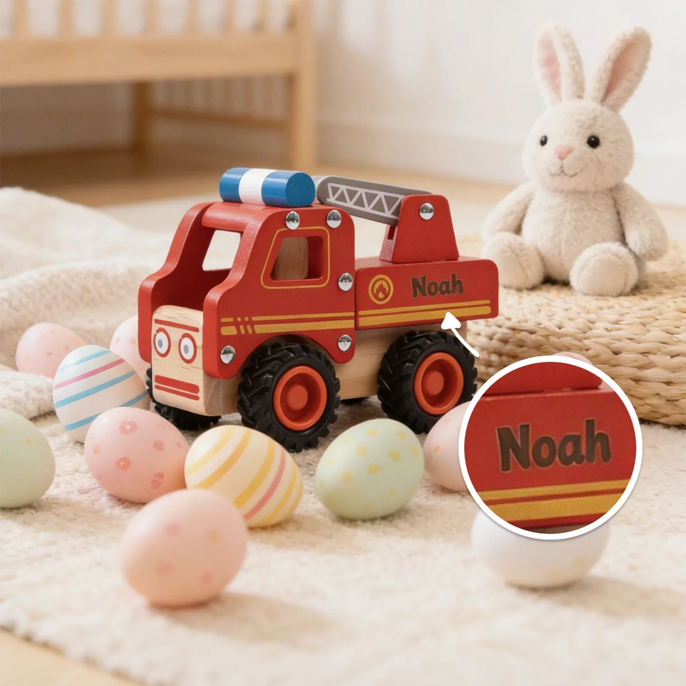 Un jouet robuste avec prénom, pensé pour les petits héros en mission