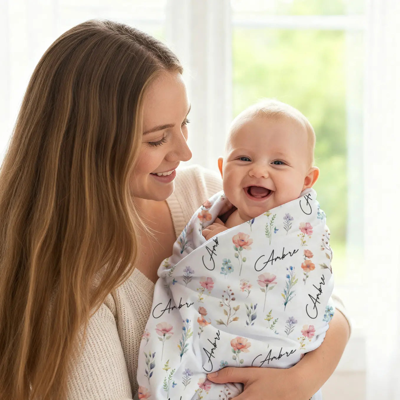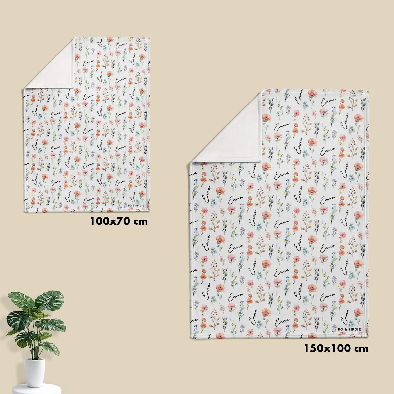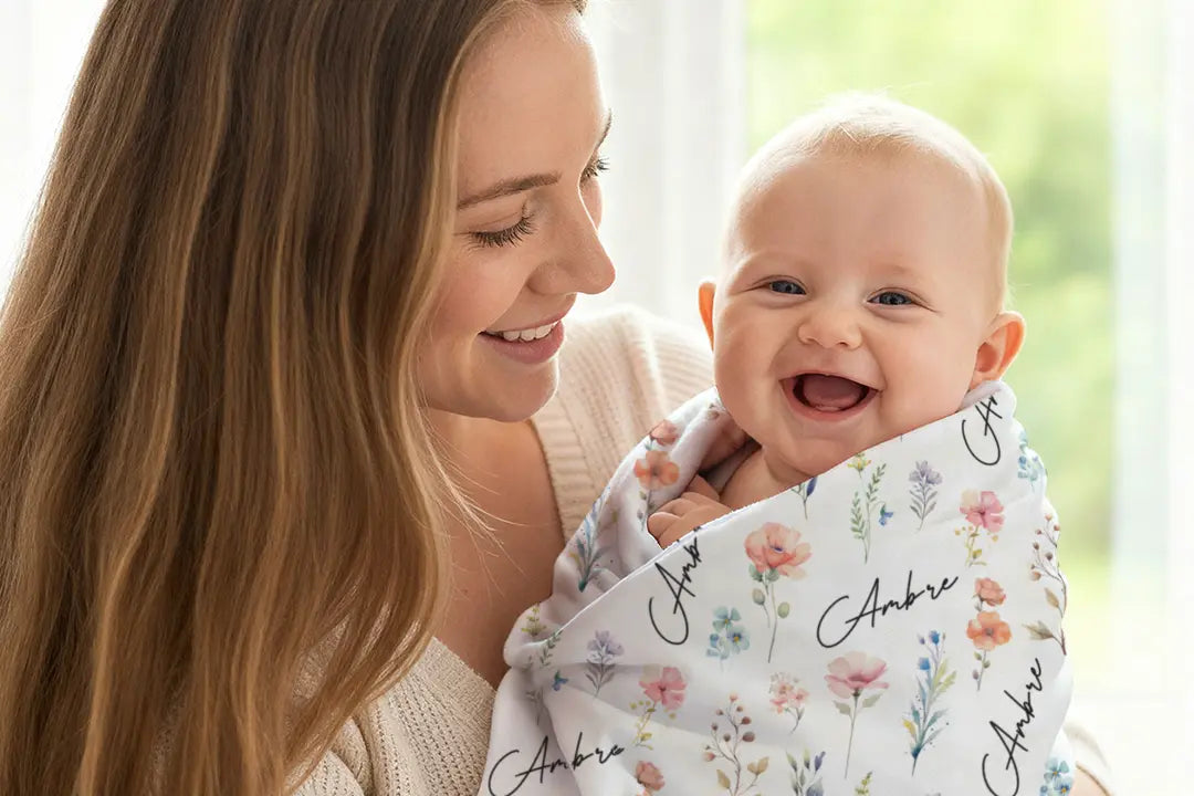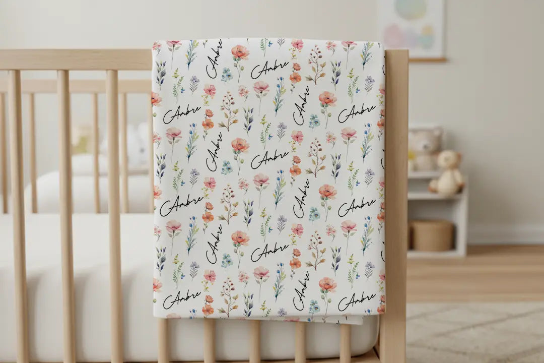 Une couverture toute douce et personnalisée – un cadeau plein d’attention pour les petits amoureux des fleurs.