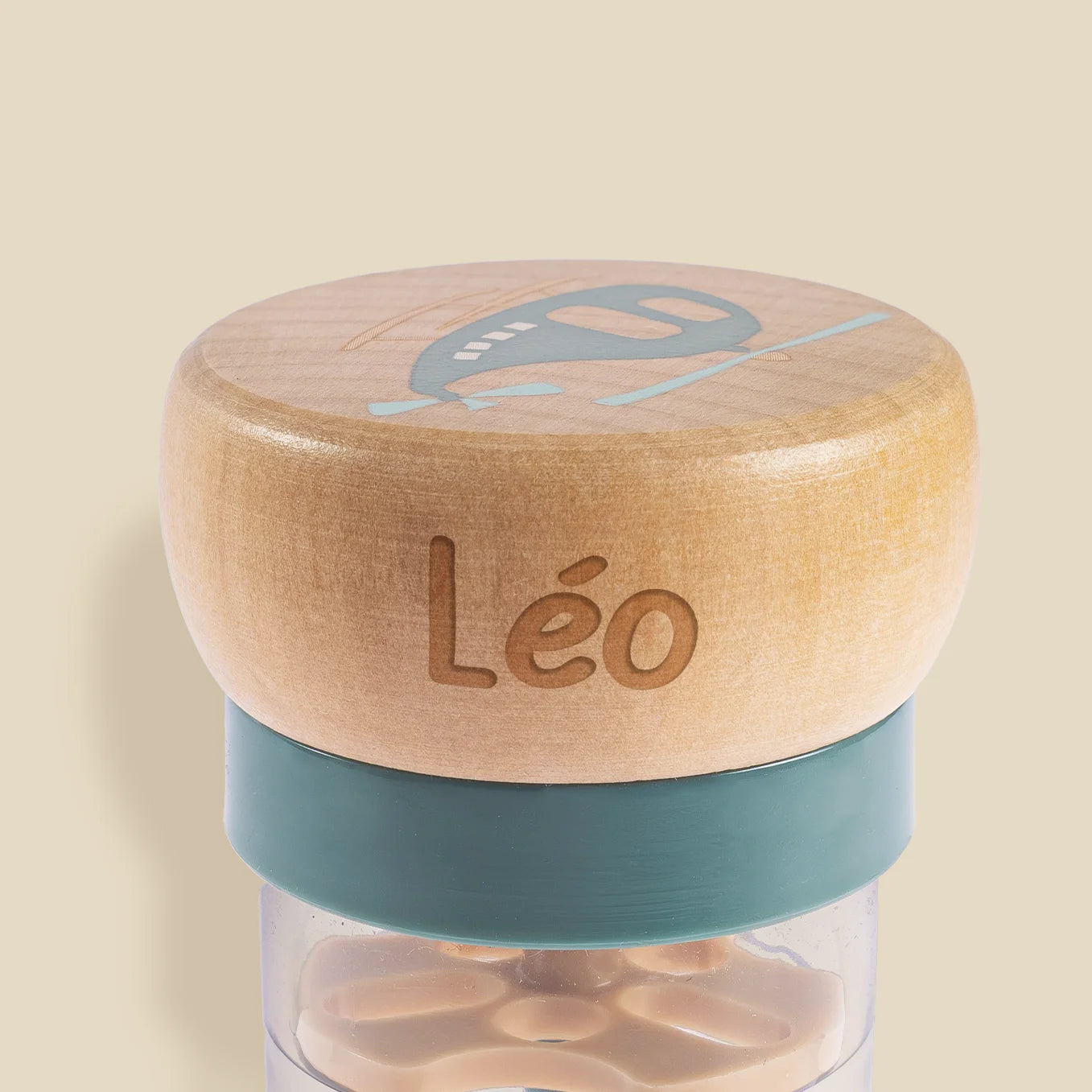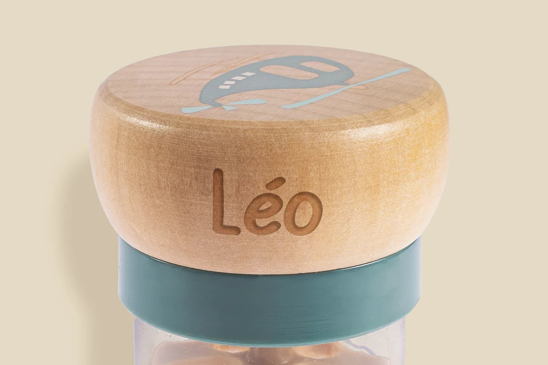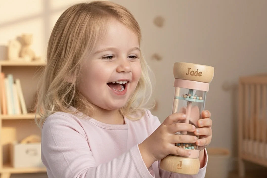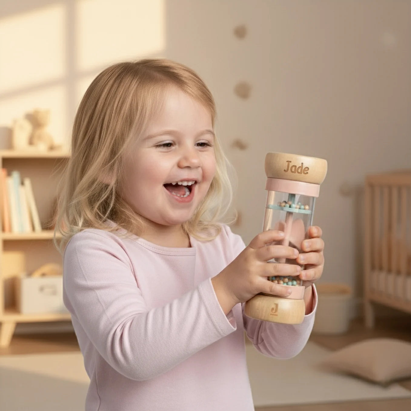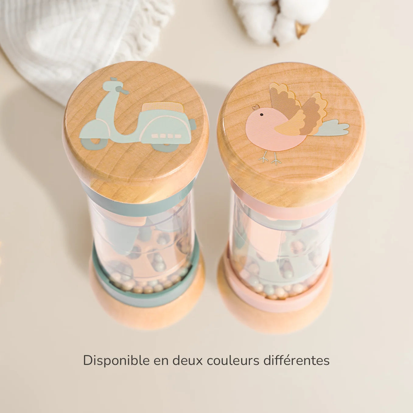 Le hochet est fabriqué en bois certifié FSC et en plastique robuste, le tout sans substances nocives.
