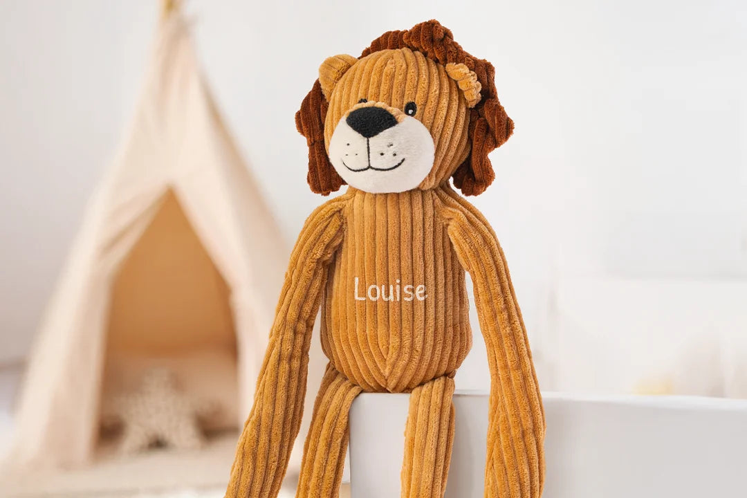 Un lion tout doux avec le prénom de votre choix, parfait pour câliner et rassurer