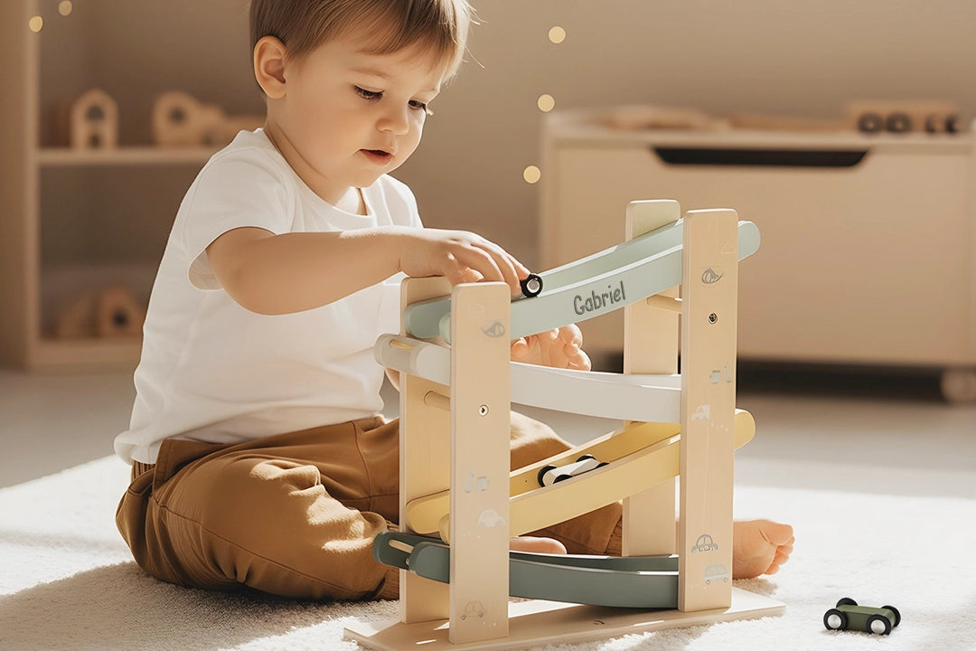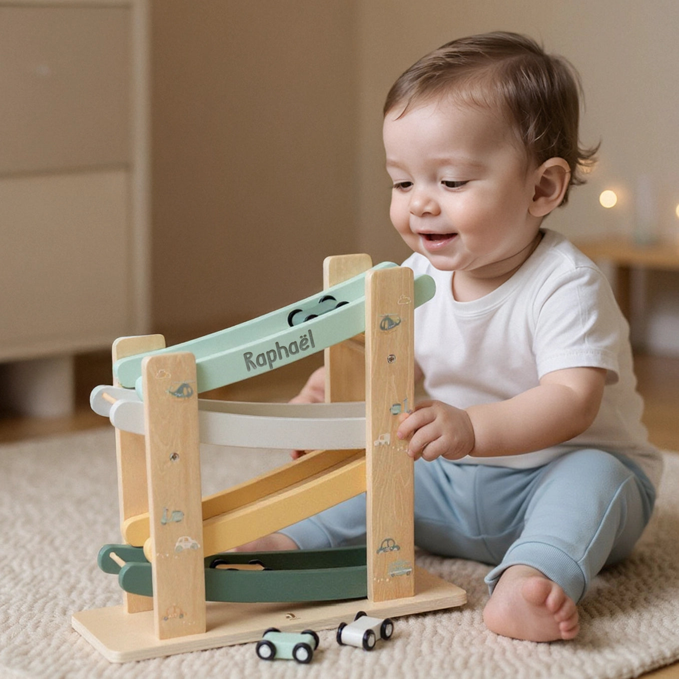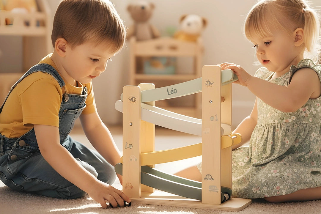 Les jouets en bois avec des noms favorisent la motricité et émerveillent les enfants.