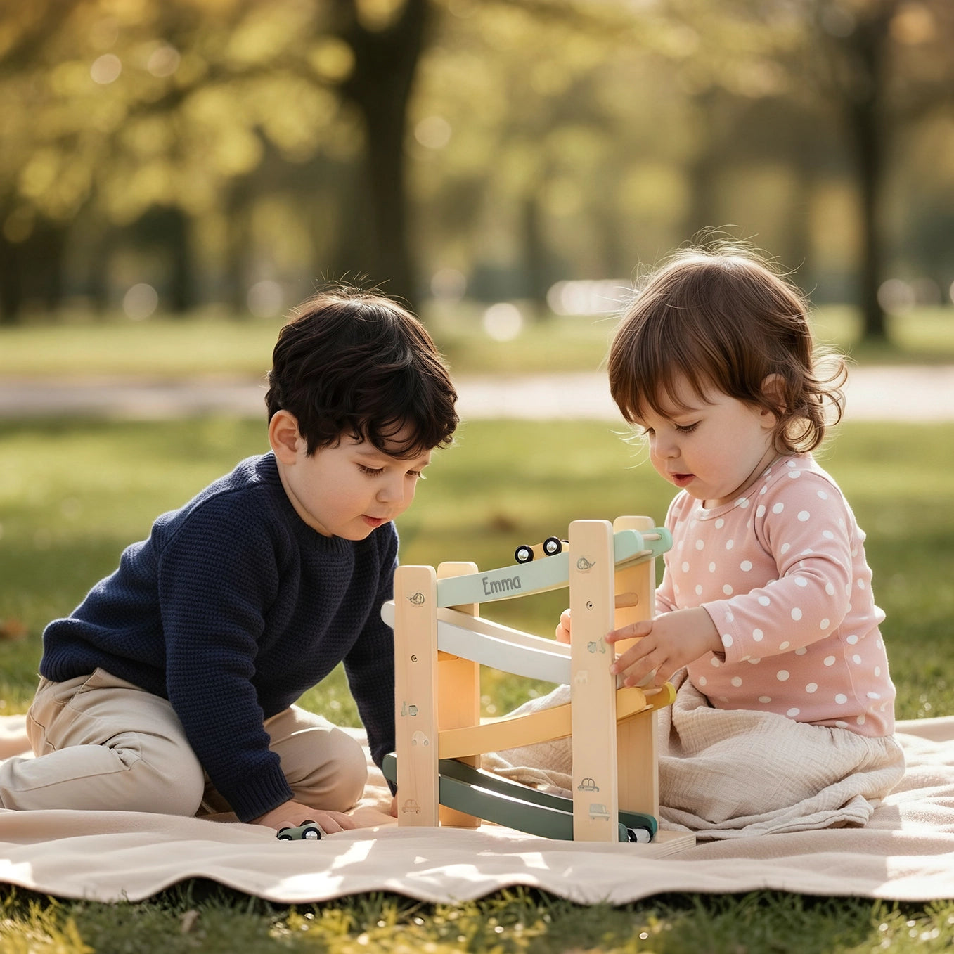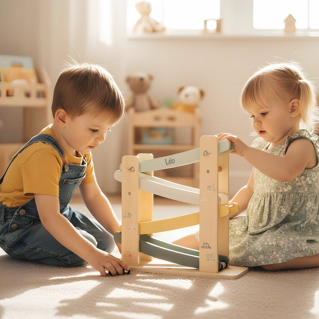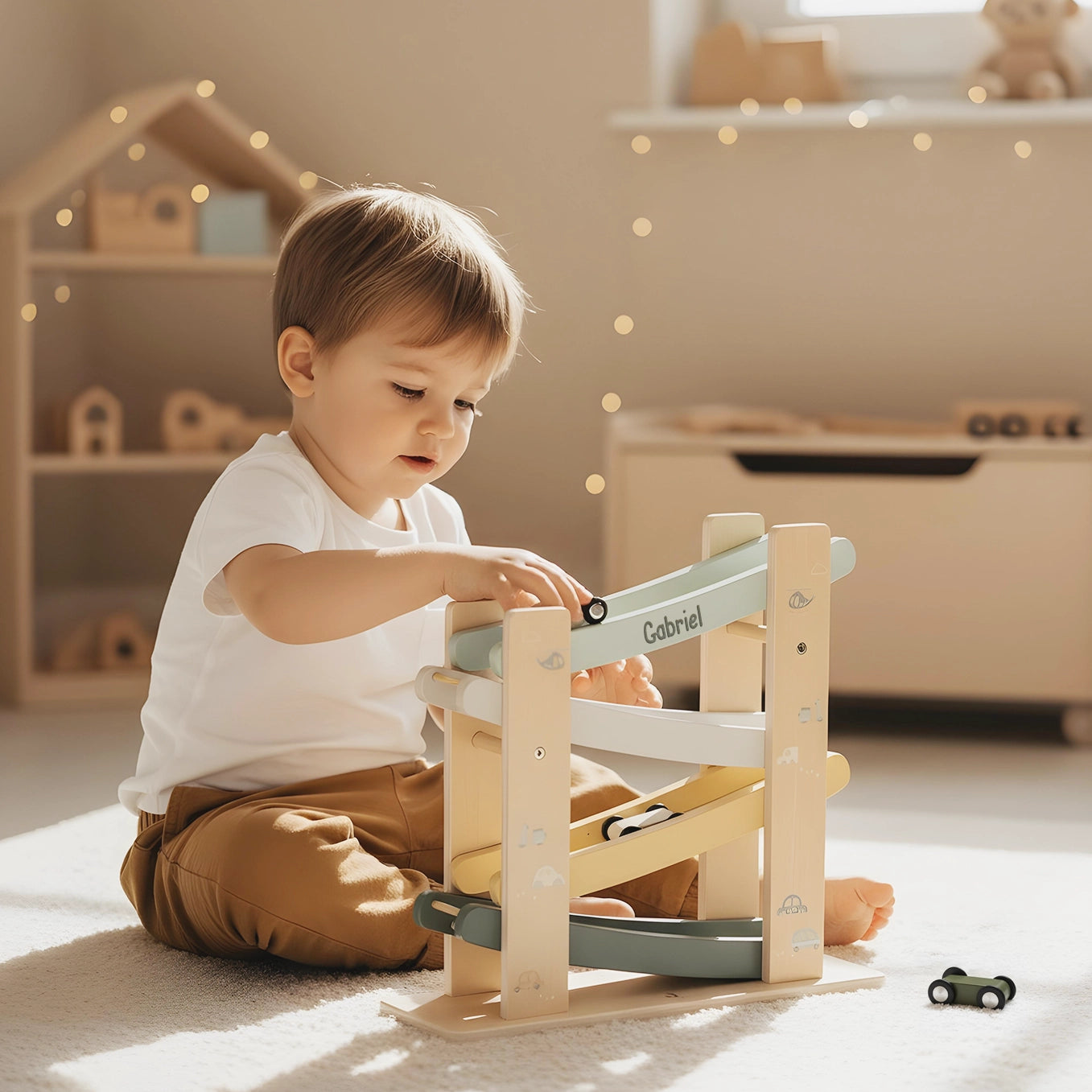 Les jouets en bois avec des noms favorisent la motricité et émerveillent les enfants.