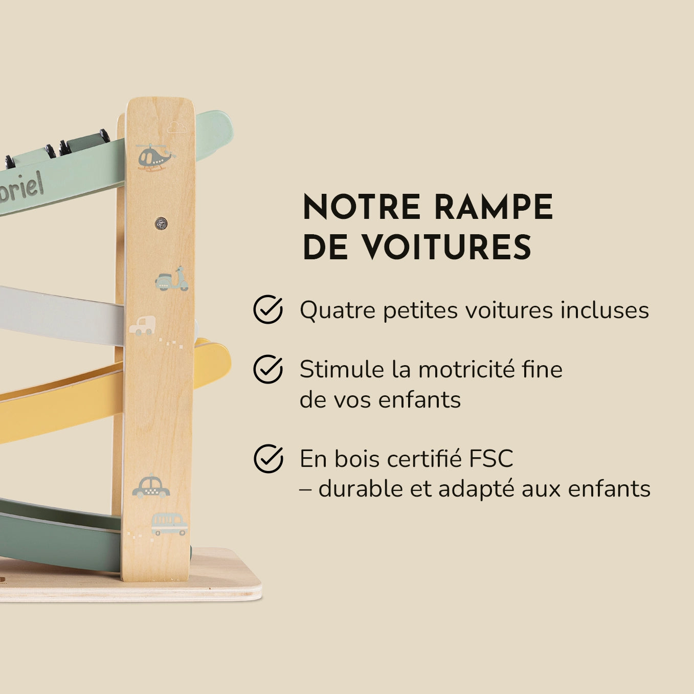 Oui, quatre petites voitures en bois, conçues avec soin, sont incluses.