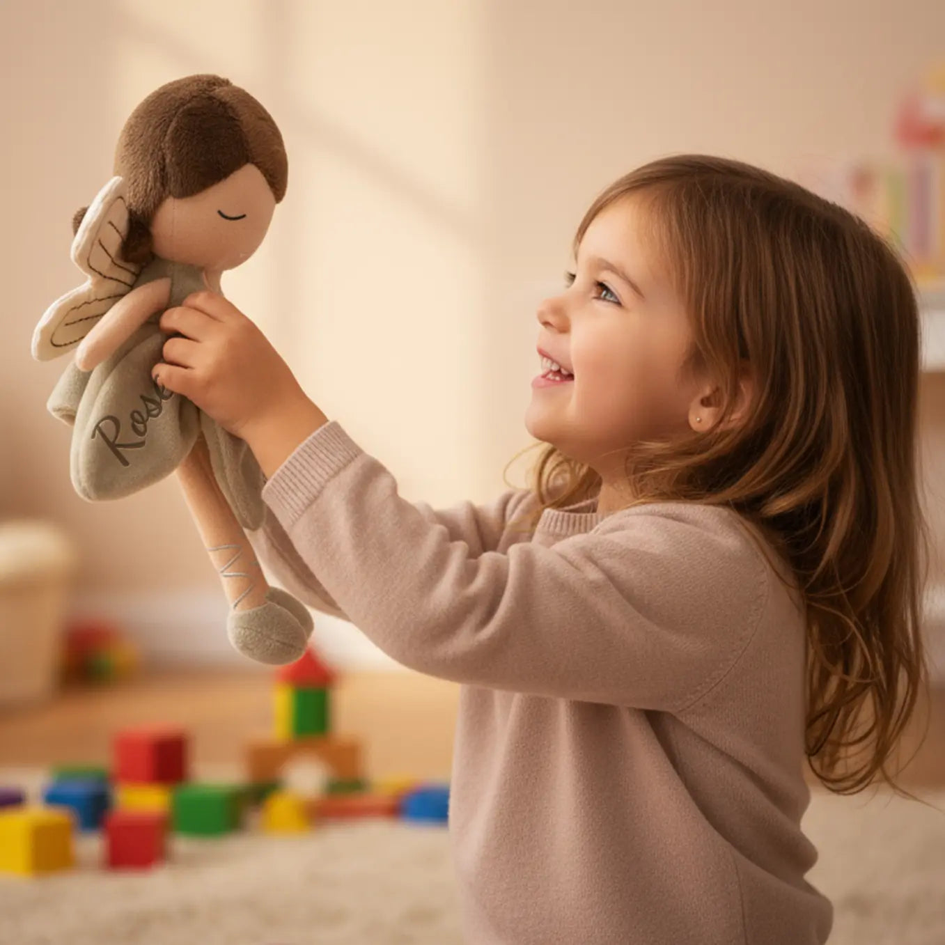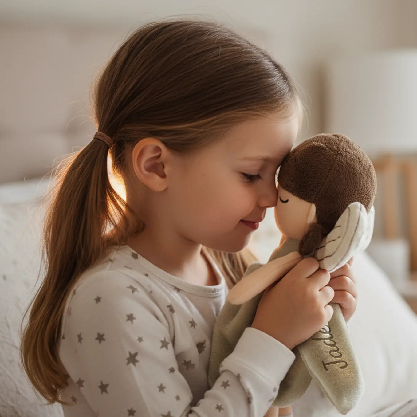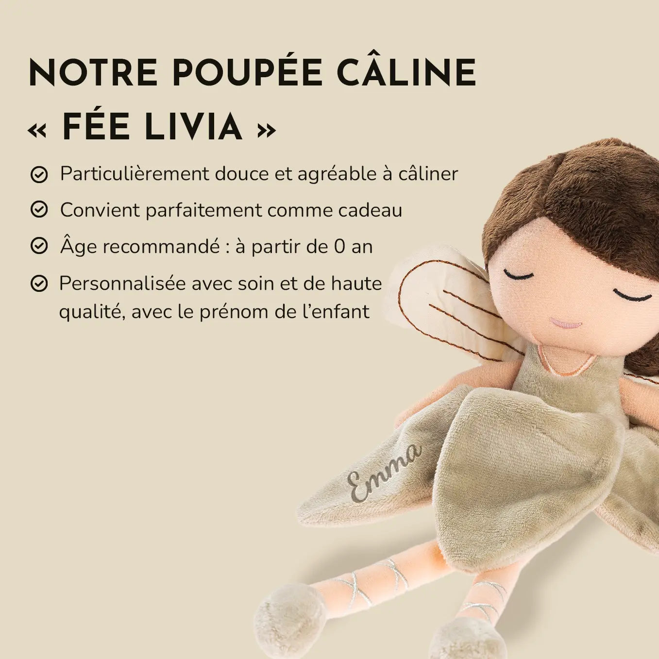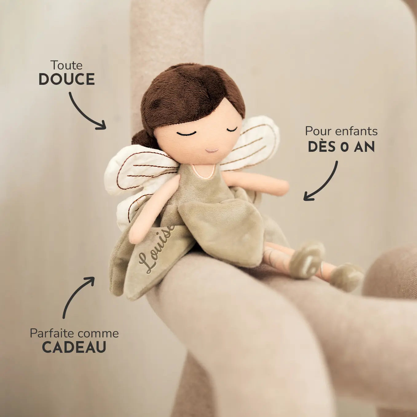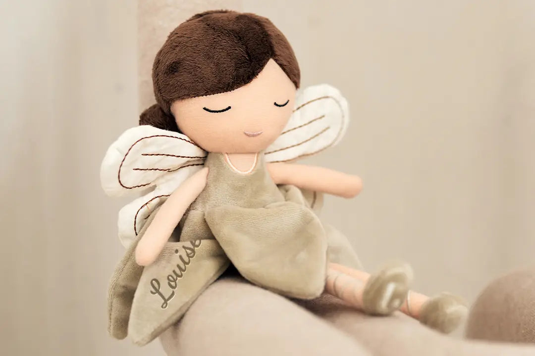 Adorable petite fée à câliner et à aimer – brodée avec le prénom de votre choix.