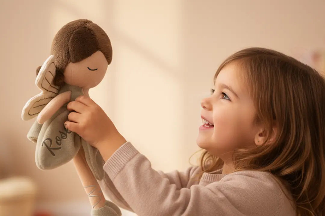 Adorable petite fée à câliner et à aimer – brodée avec le prénom de votre choix.