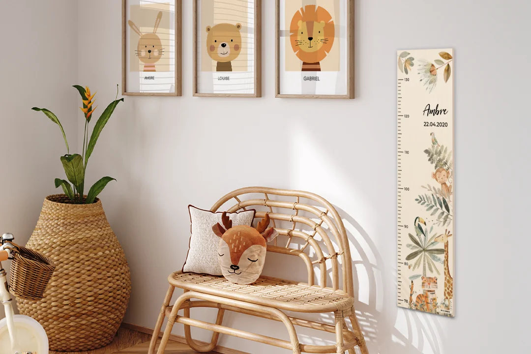 Toise personnalisée « Safari » - Objet unique pour chambre d'enfant
