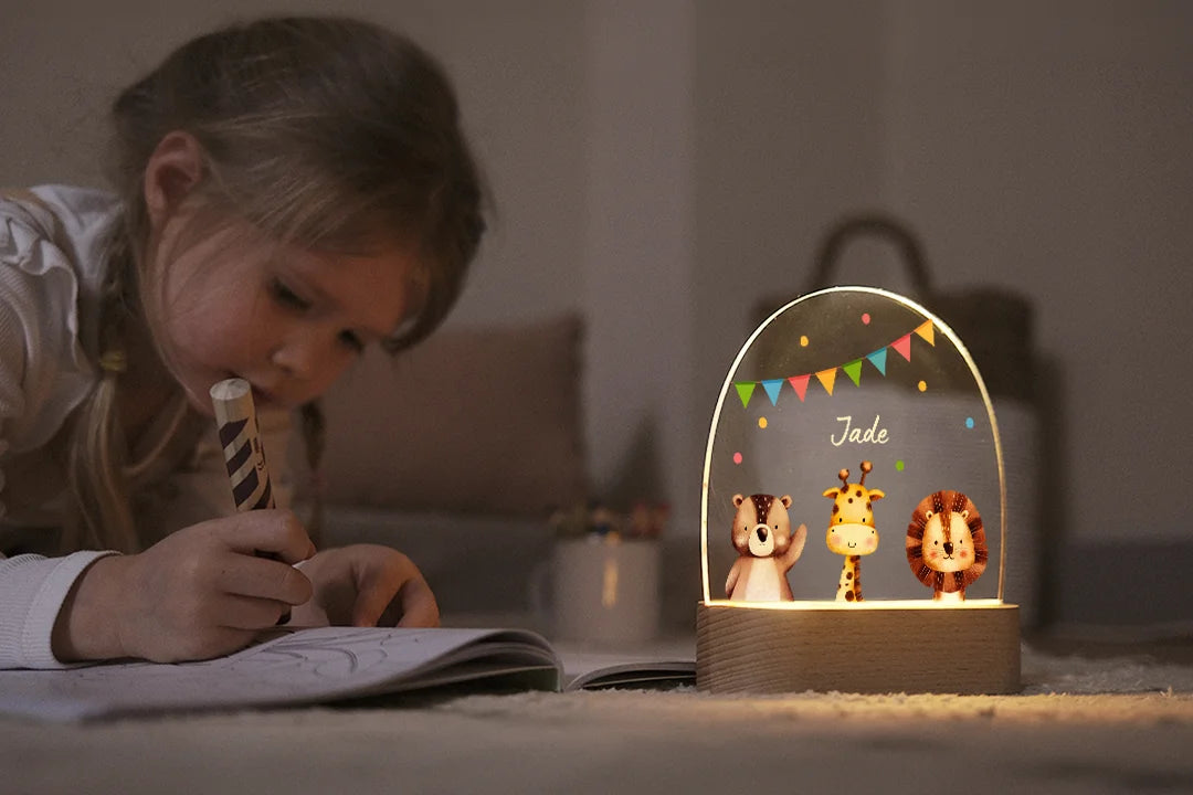 Lumière douce avec d'adorables animaux – notre veilleuse personnalisée offre une routine de sommeil réconfortante grâce à sa douce lueur chaleureuse.