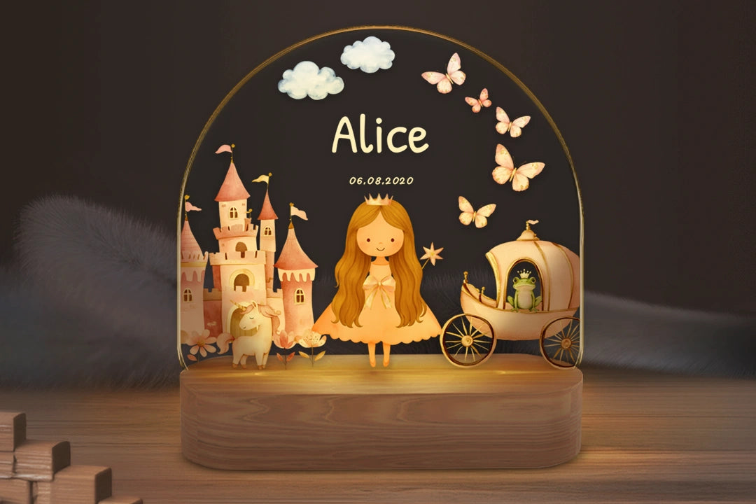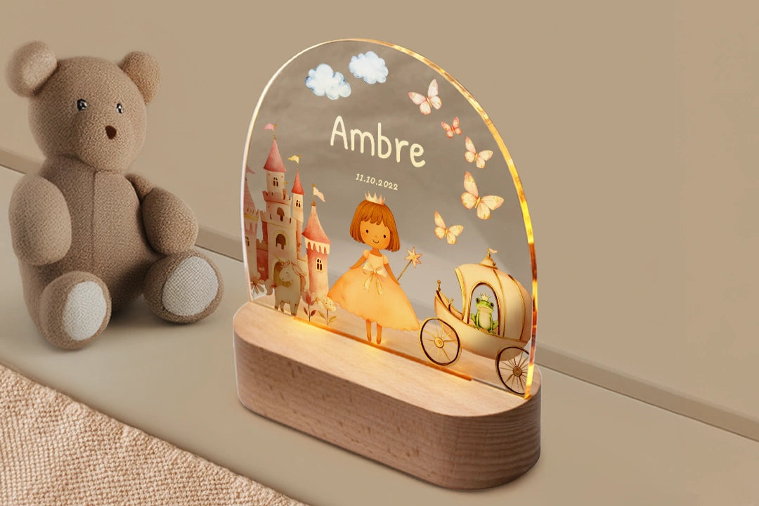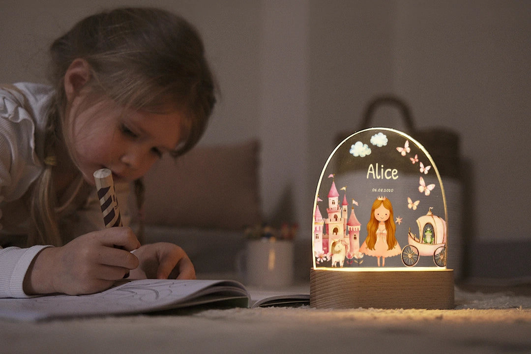 Veilleuse LED magique avec nom – personnalisable pour les petites rêveuses.